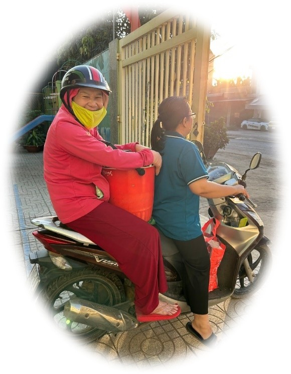 Suivant l’esprit de la rencontre en Belgique, l’initiative de la “Marmite de soupe de riz mobile Laudato Si” nous est venue à l’esprit. Nous utilisons les grands glacières isothermes – au lieu des boîtes en plastique – pour apporter la soupe jusqu’à chaque domicile. Les bénéficiaires recoivent la soupe avec leur propre bol.