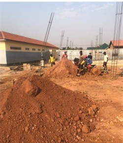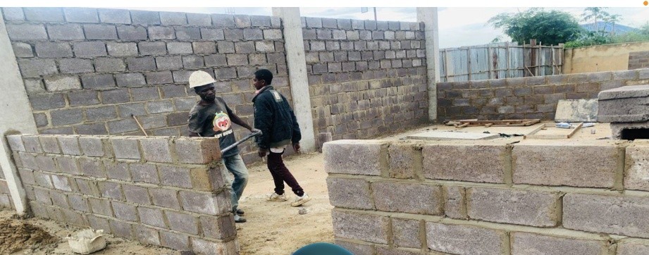 Travaux en cours pour la construction de l’école secondaire Pierre Fourier (quartier Joli Site, Kolwezi – RDC Congo)